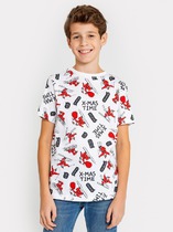 Стильная футболка из трикотажного полотна в трендовую набивку дополнена трендовым минималистичным принтом. Создавай стильные яркие образы, сочетая модель с юбкой или брюками из новой коллекции!