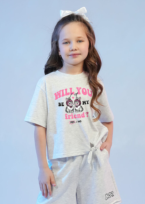 Стильная футболка из хлопкового трикотажного полотна прекрасно дополнит твой гардероб. Модель дополнена эластичной горловиной, завязкой по низу и ярким принтом. Создавай стильные яркие образы, сочетая модель с шортами или брюками из новой коллекции!