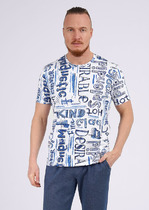 Футболка из трикотажного полотна. Модель с коротким рукавом и круглой горловиной. Дополнена имиджевой фурнитурой и дизайнерским принтом. Отличный вариант для встреч с друзьями и прогулок. Просим обратить внимание, что т.синий цвет близок к т.серому.