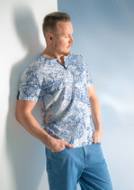 Базовая однотонная футболка стандартного объема с круглой горловиной, втачным рукавом из хлопкового полотна с добавлением эластана. Является неотъемлемой частью мужского гардероба.