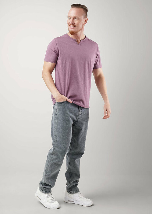 Футболка мужская с округлой горловиной и планкой из фактурного полотна ""флам"". Данная модель прекрасно комбинируется с джинсами или шортами. Отличное решение на лето для прогулок с друзьями или поездки на отдых.