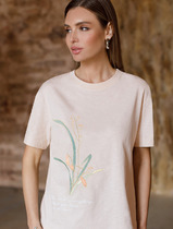 Футболка прямого силуэта свободного прилегания с втачным рукавом, горловина обработана обтачкой