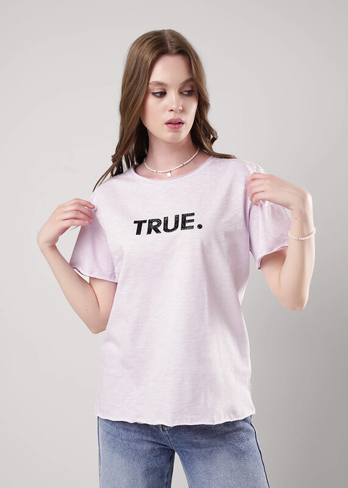 Футболка из трикотажного хлопкового полотна прямого кроя.Горловина с обтачкой с открытым срезом.Короткий втачной рукав.По низу изделия и рукава подгибка с открытым срезом. Спереди термопленка,термопайетки,принт с отлипом - в зависимости от цвета изделия.