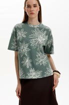 Футболка прямого силуэта из плотного трикотажного полотна. Со спущенным рукавом длиной до локтя. Круглый вырез горловины.