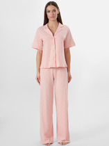 Халат из трикотажного полотна свободного кроя, на запах. По талии пояс со шлевками и внутренними завязками. По горловине и борту окантовка. Спущенная линия плеча, с коротким рукавом. По бокам накладные карманы. По низу рукава и изделия -рюша.