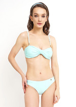 Костюм купальный женский однотонный из полиамида с эластаном, лиф с треугольными чашечками на регулируемых бретелях с магнитной застежкой, трусы бикини с высокой посадкой.