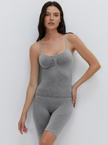 Майка из хлопкового трикотажного полотна рибана. Умеренный объем. Широкая бретель, округлая горловина. По горловине и пройме окантовка.