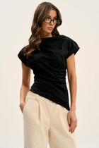 Майка из хлопкового трикотажного полотна рибана. Умеренный объем. Широкая бретель, округлая горловина. По горловине и пройме окантовка. Производство Узбекистан.