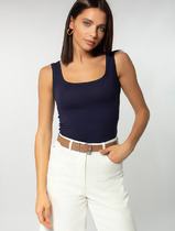 Майка женская из эластичного хлопкового полотна. Узкая бретель. В боковом шве фирменный жаккардовый логотип.