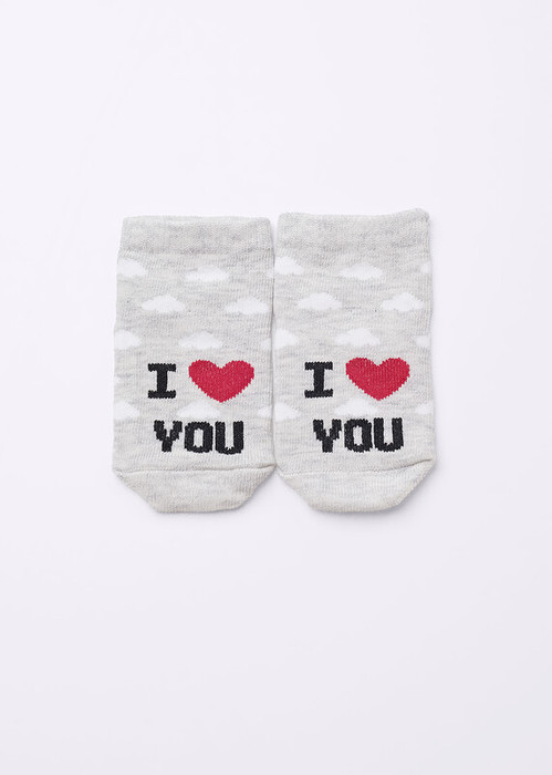 Детские носки для ясельной возрастной группы, розового цвета, с изображением надписи ""I LOVE YOU"" . Выполнены из мягкого трикотажа, что не вызывает дискомфорта при носке, отлично сидят на ножке. После стирки не дают усадку.