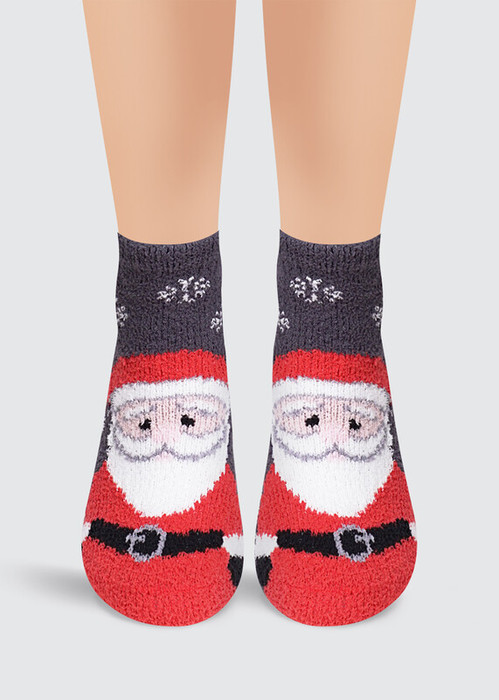детские новогодние носки из мягкой "травки" с рисунком деда мороза
