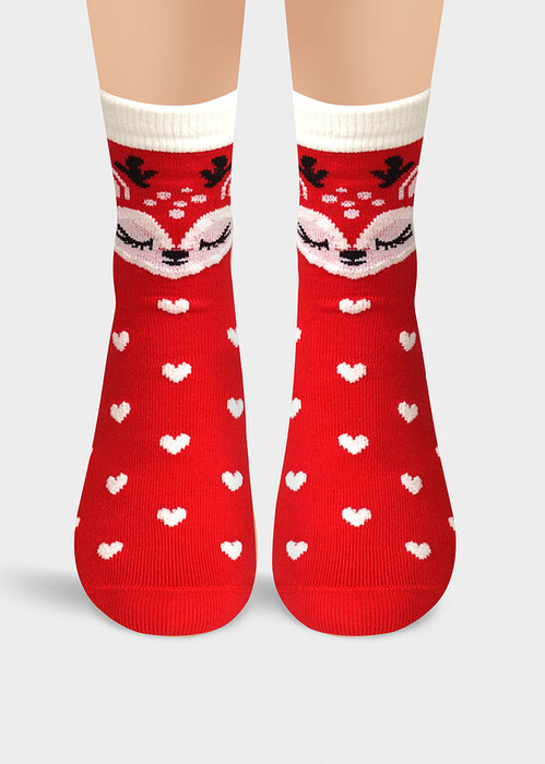 Новогодние женские носки (гладь) рисунок ""Мордочка Оленя"" ,бортик и рисунок вывязан мягкой пушистой пряжей ""травка""