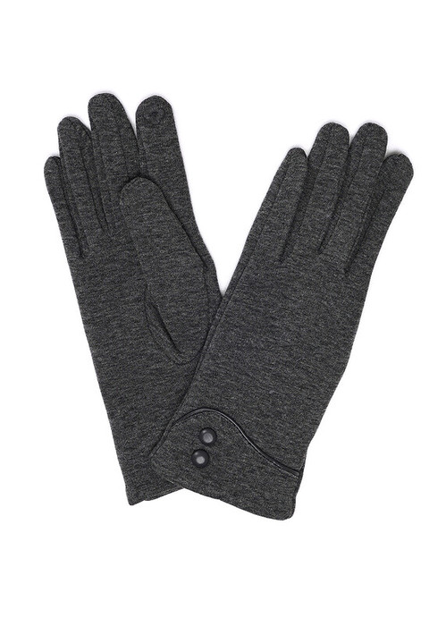 Женские перчатки из трикотажного полотна имитирующего внутри искусственный мех, декорированы кожанной окантовкой и пуговицами, на большом и указательном пальцах вышивка ""сенсорными"" нитками, размер 18.