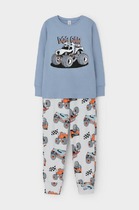 Комплект хлопковой пижамы из джемпера и брюк. Джемпер свободного кроя дополнен эластичной горловиной и манжетами. Брюки среднего объема, эластичный пояс обеспечит комфорт и идеальную посадку. По низу брюк эластичные манжеты.