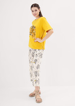 Комплект мужской состоящий из футболки и брюк. Футболка из фактурного трикотажного полотна с коротким рукавом, спереди авторский принт. Брюки из трикотажа на широком поясе с резинкой и регулируемым шнуром, по бокам удобные карманы.