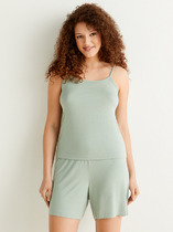Пижама для дома из хлопкового трикотажного полотна с карбоном. Джемпер с длинным втачным рукавом. Застёжка на пуговицы, воротник с лацканами. По переду накладной карман, нашивка. Боковые разрезы. Брюки прямые, цельнокроенный пояс на внутренней резинке.