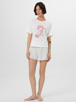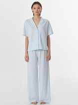 Пижама для дома из хлопкового трикотажного полотна с карбоном. Джемпер с длинным втачным рукавом. Застёжка на пуговицы, воротник с лацканами. По переду накладной карман, нашивка. Боковые разрезы. Брюки прямые, цельнокроенный пояс на внутренней резинке.