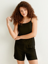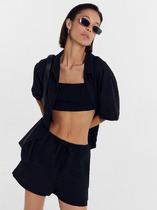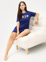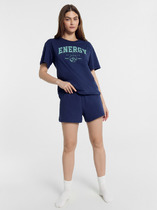 Набор одежды для дома и отдыха из трикотажного полотна. Футболка прямого силуэта из трикотажного полотна. Округлая горловина с обтачкой. Короткий втачной рукав. На полочке и спинке принт. Шорты с притачным широким поясом на резинке, принт.