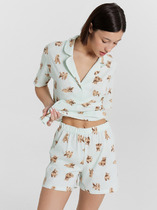 Набор одежды из трикотажного полотна. Футболка прямого кроя. Короткий спущенный рукав, по низу декоративная тесьма с кружевом. Округлая горловина с обтачкой. Спереди принт. Шорты с поясом на внутренней резинке. Боковые карманы в шве.По низу шорт рюша.