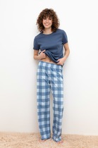 Пижама для дома из трикотажного полотна кашкорсе лапша. Майка укороченная. Узкая бретель. Округлый вырез горловины. По горловине и пройме окантовка.Спереди нашивка. По низу внутренняя резинка. Шорты прямого кроя, пояс на внутренней резинке, нашивка.
