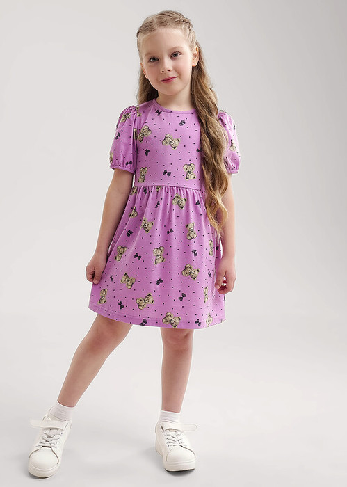 Милое романтичное платье из хлопкового трикотажа- то, что нужно для создания классного повседневного образа! Модель с пышной юбкой и объёмными рукавами- ""фонариками"" выполнена из полотна в набивку.