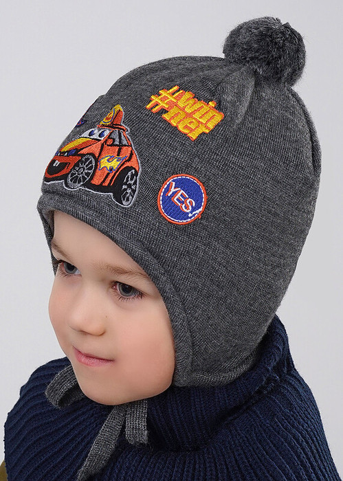Шапка с синтепоновым утеплителем, который имеет отличные теплоизоляционные характеристики. У модели: удлиненные уши, тематическая вышивка ""машины"" и внутренний слой из флиса