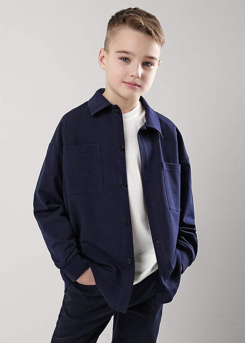 Стильная рубашка из трикотажного полотна станет модной новинкой в твоём гардеробе! Комфортная посадка по фигуре, актуальный объём и практичная цветовая гамма- то, что нужно для создания повседневного школьного образа и отличного настроения!