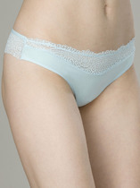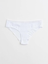 Трусы бикини женские из эластичного хлопкового полотна. По переду рез с кружевной вставкой. Обработка краев по талии и ноге окантовочная резинка.