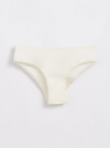 Трусы бикини женские из эластичного хлопкового полотна. Обработка краев по талии - ажурная резинка, по ноге - полуокантовка. По переду атласный бант.