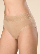 Трусы бразилиана женские из эластичного вискозного полотна - кашкорсе лапша. Обработка краев по талии - жаккардовая резинка, по ноге - узкое кружево.