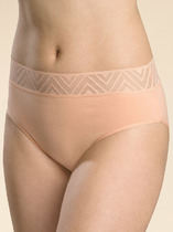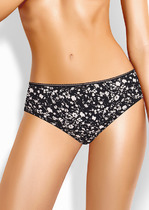 Модель бразилиана на хлопковом полотне с добавлением эластана. На детали переда -  симметричные кружевные вставки, переходящие на деталь спинки. По талии - обработка резинкой. Завершает дизайн небольшой бант на детали переда.