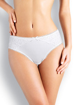 Трусы-слипы женские из эластичного хлопкового полотна. По переду вставка из сетки поверх основного полотна. Обработка краев - окантовкой
