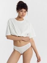 Трусы-шорты женские из эластичной сетки. По переду вставка из хлопкового полотна. Обработка краев по талии - ажурной резинкой с фестоном, по ноге - узкое кружево.