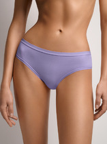 Трусы стринги комфортной посадки. В отрезном бочке -кружево, переходящее на спинку. По поясу и ножкам-обработка резинкой с фестоном. На детали переда расположен небольшой атласный бант.