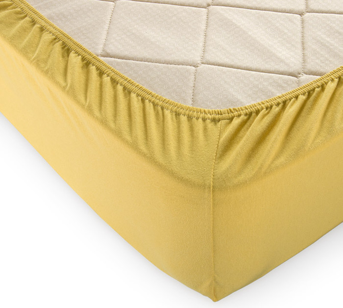 Совместные покупки Пермь Товары для дома и дачи Постельное белье — Простыня трикотажная на резинке с бортом 20см Горчица,135-145 г/м2