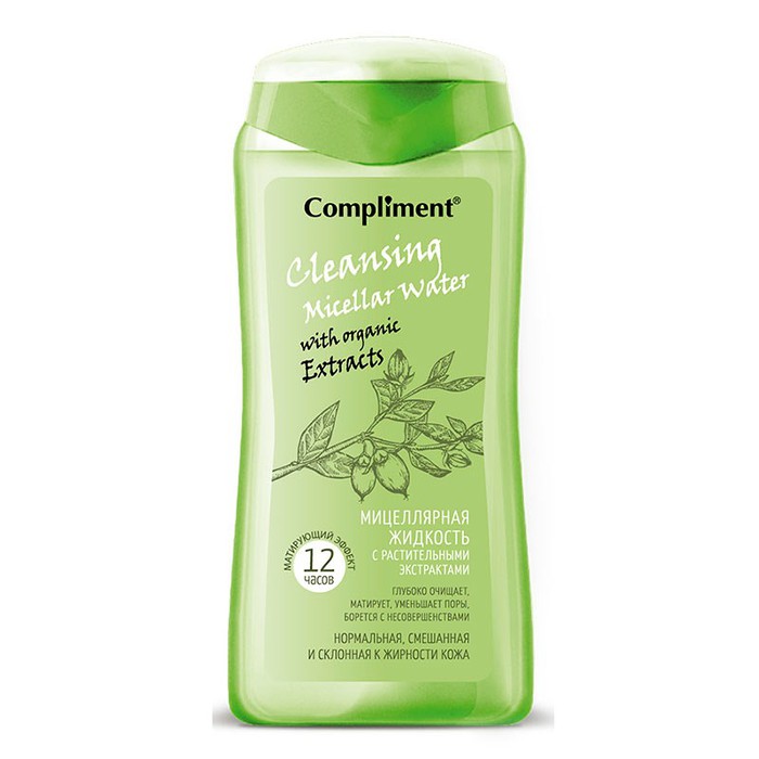 Комплекс растительных экстрактов, входящих в состав мицеллярной жидкости Compliment с матирующим действием, сокращает видимость пор, обеспечивает гладкость и ровный тон кожи, склонной к проявлениям жирности.