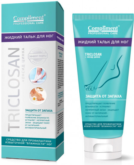 *Тальк – полностью натуральный и гипоаллергенный порошок, который является незаменимым средством в борьбе за сухость и чистоту стоп. Он адсорбирует излишнюю влагу с поверхности ног. Его минеральная основа помогает снизить интенсивность потоотделения, не нарушая кислотно-щелочного баланса кожи. Активный слой талька способен защищать ноги от повышенной потливости в течении всего дня.