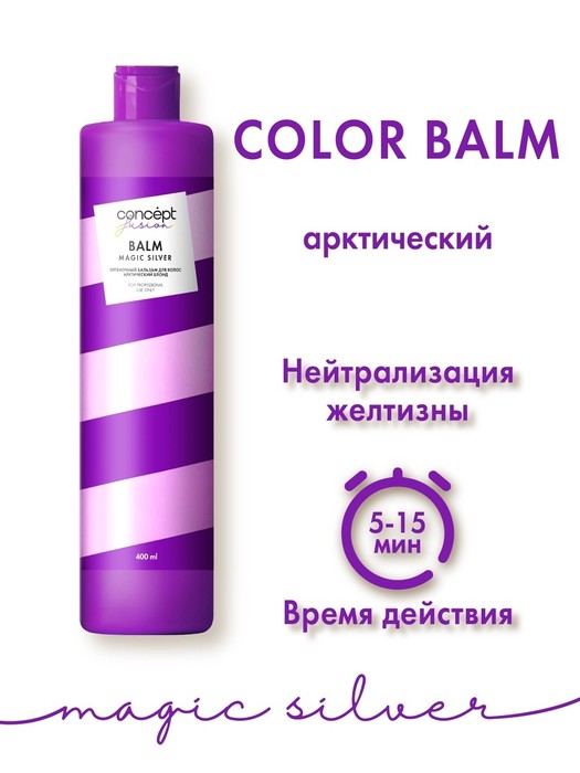 Пигменты бальзама нейтрализуют нежелательный желтый оттенок на осветленных и окрашенных в светлые тона волосах, придавая им легкий серебристый оттенок.