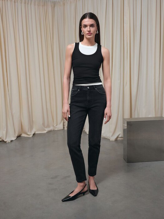 Совместные покупки Пермь Женская одежда Джинсы — Conte Актуальная коллекция CONTE CON-790 Чёрные джинсы slim с эффектом потёртост