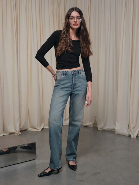 Джинсы straight из плотного тёпло-синего оттенка денима станут стильным дополнением гардероба и эффектной частью образа. Модель с винтажной варкой прекрасно подойдёт для экспериментов и подчеркнёт вашу индивидуальность.