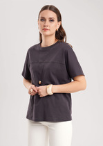 Свитшот из эластичного хлопкового полотна с облегающими манжетами и притачным поясом мягко облегает силуэт, не сковывает движений и при этом идеально смотрится на любой фигуре. Изюминку в ваш повседневный образ внесет эффектный золотой принт, нанесенный методом металлической печати.