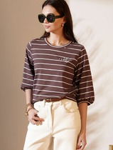 Vilatte Лонгслив в полоску с рукавами-буфами из премиального хлопка с эластаном