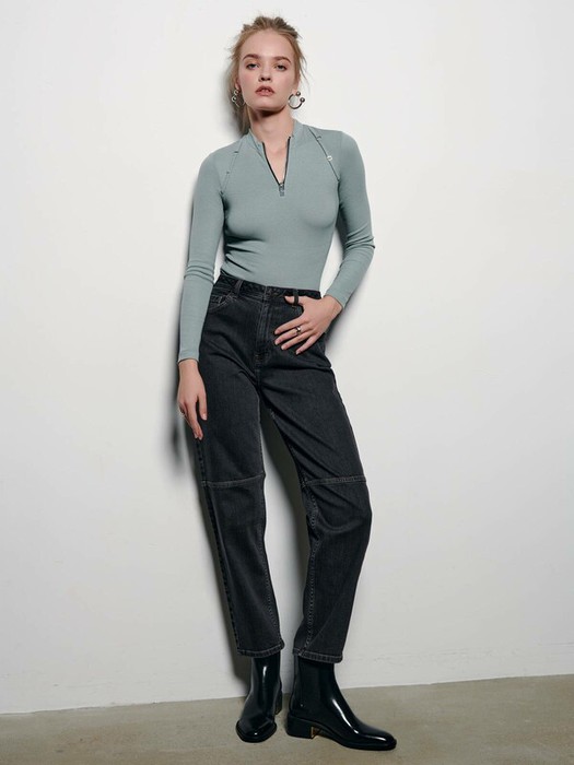 Джемпер в рубчик с невысоким воротником-стойкой на молнии и декоративными тесьмами в области плеч станет источником вдохновения для множества индивидуальных повседневных образов.