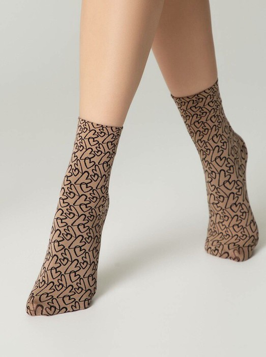 Плотные носки с вывязанным рисунком «сердечки» станут эффектным дополнением ваших повседневных образов и подарят комфорт в прохладную погоду.