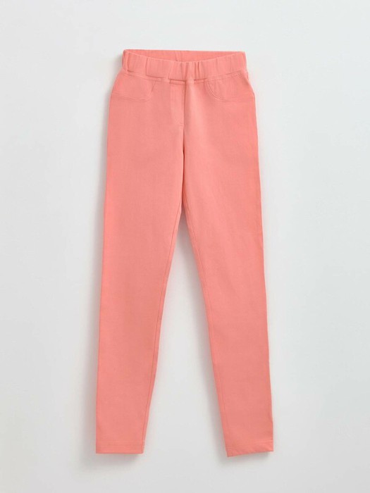 Леггинсы женские, облегающие из однотонного трикотажного полотна. По переду имитация гульфика и боковых карманов. По спинке кокетки и накладные карманы. Верх изделия обработан поясом с эластичной тесьмой внутри. По правому переднему шву нашиты аппликации в виде бабочек.