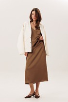 Юбка-midi из фактурного костюмного полотна станет лаконичной основной для повседневных образов, поможет создавать актуальные деловые аутфиты, а при должной стилизации выступит в роли модели для вечернего выхода в свет.