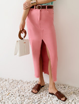 Vilatte Юбка из супер-эластичного денима с необработанным краем D56.040 розовое