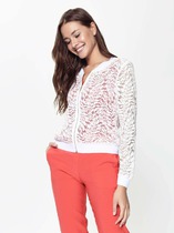 Кружевной бомбер с металлической молнией станет незаменимой вещью в весенне-летнем гардеробе девушки. Модница оценит трендовое объемное кружево с растительным мотивом. Бомбер безупречно сидит по фигуре благодаря облегающим манжетам и эластичному поясу.