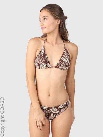 Треугольный бикини с принтом в виде пальм от BRUNOTTI, изготовлен из эластичной полиэстерной смеси, плотно облегает фигуру для максимального комфорта, верх бикини с мягкими чашечками и тонкими бретелями, удобные трусики с низкой посадкой, внешний материал: 90% полиэстер, 10% эластан, стандартный размер.