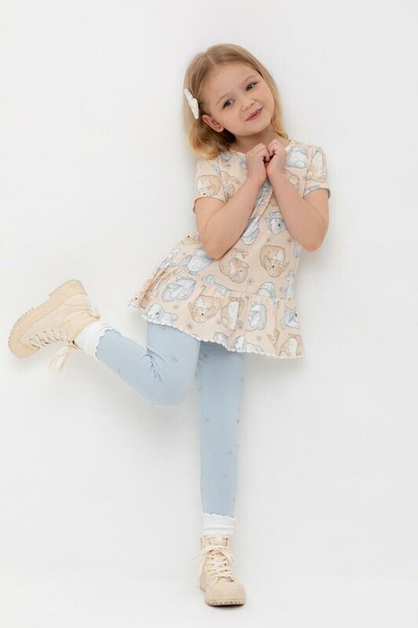 Легкая трикотажная туника для девочки из высококачественного хлопка. По низу украшена кружевом. Застёжка на плече в размерах 92 и 98. Оригинальная набивка выполнена из стойких текстильных гипоаллергенных красителей. Изделие сохраняет цвет и форму после многократных стирок.